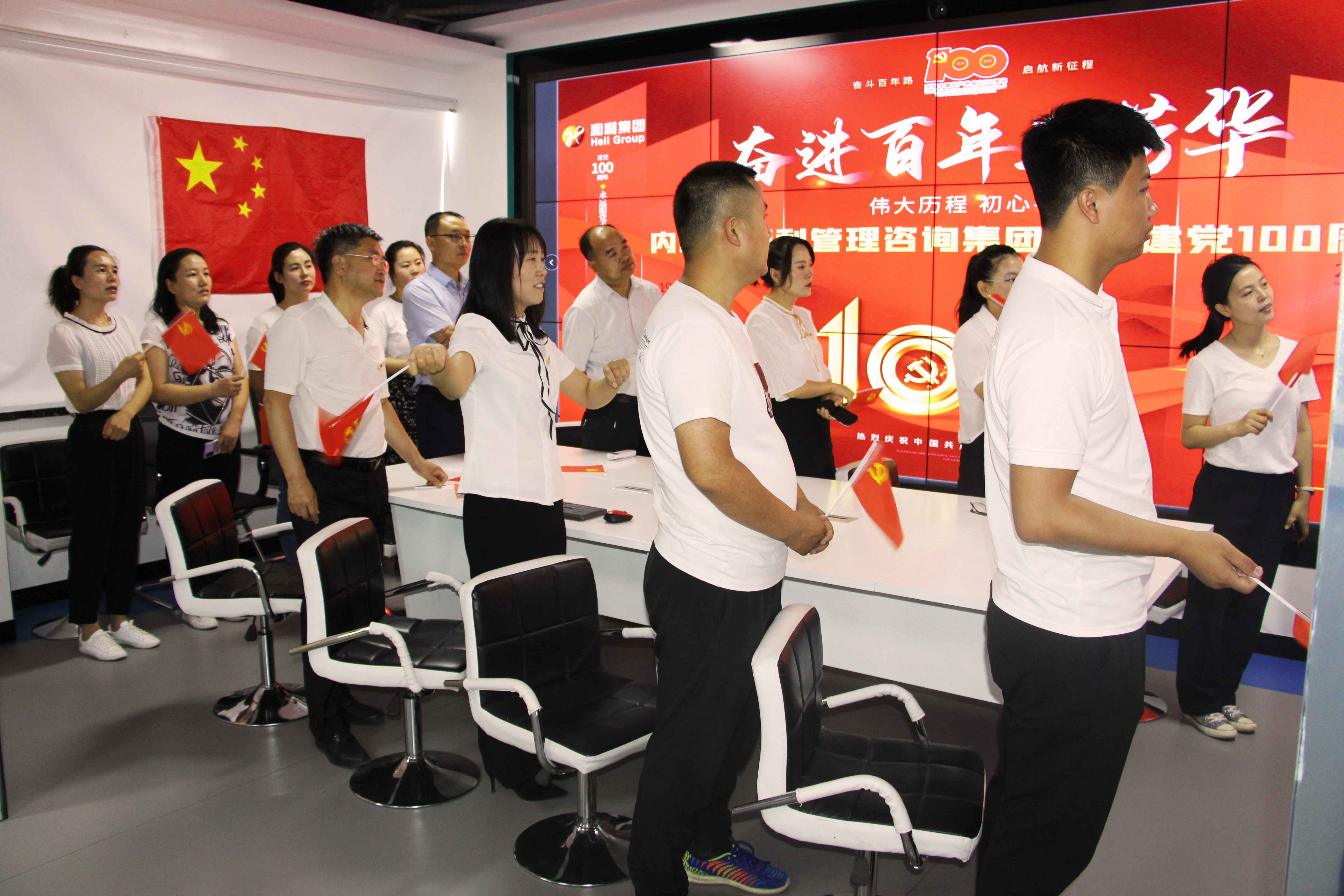 《沒有共產(chǎn)黨就沒有新中國》響徹中華大地,紅歌傳唱一代代,恰逢百年黨生日,和利黨支部組織黨員集體觀看《慶祝中國共產(chǎn)黨成立100周年大會》直播、組織全員參與“唱首紅歌給黨聽,生日蛋糕感黨恩”活動。