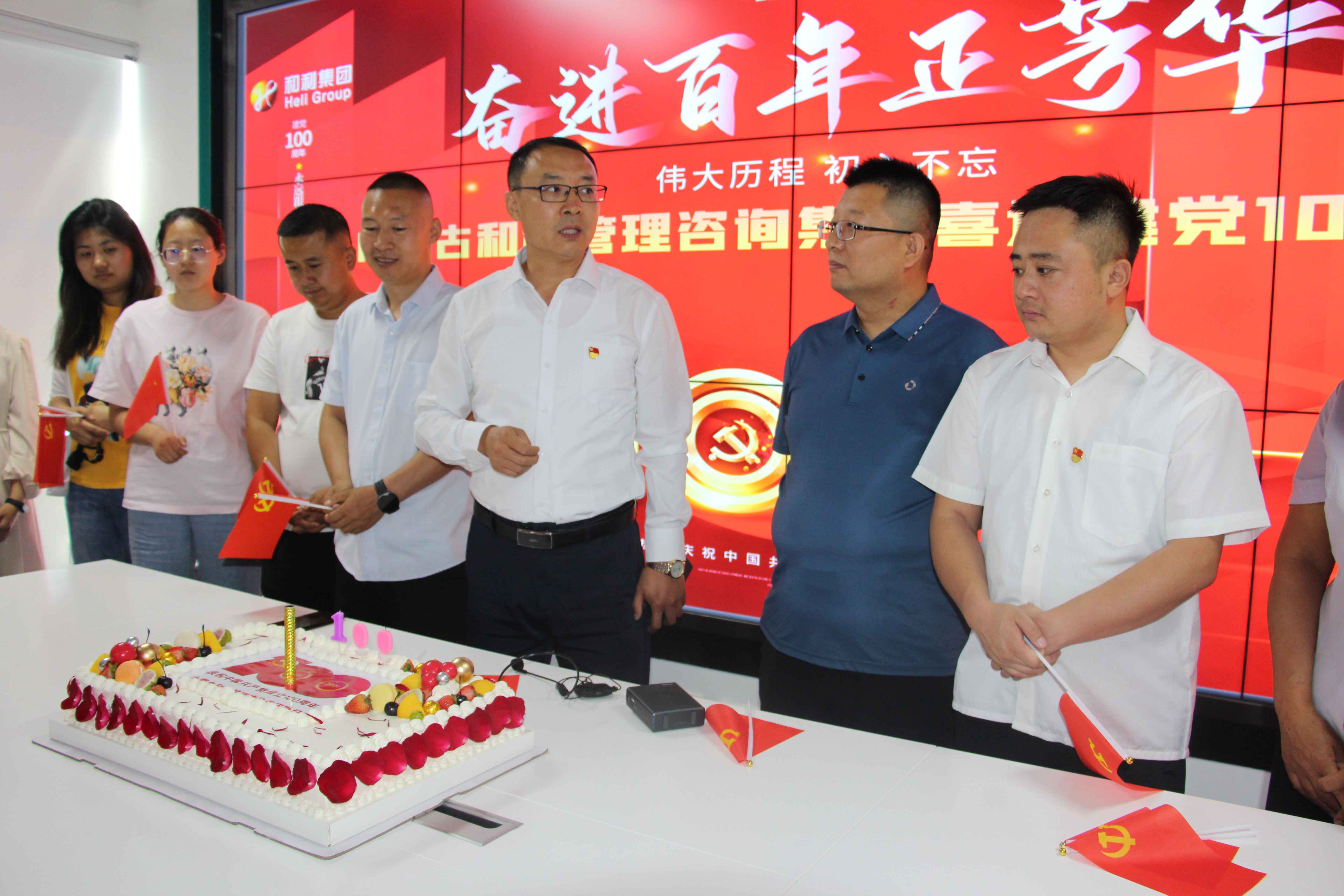 《沒有共產(chǎn)黨就沒有新中國》響徹中華大地,紅歌傳唱一代代,恰逢百年黨生日,和利黨支部組織黨員集體觀看《慶祝中國共產(chǎn)黨成立100周年大會》直播、組織全員參與“唱首紅歌給黨聽,生日蛋糕感黨恩”活動。