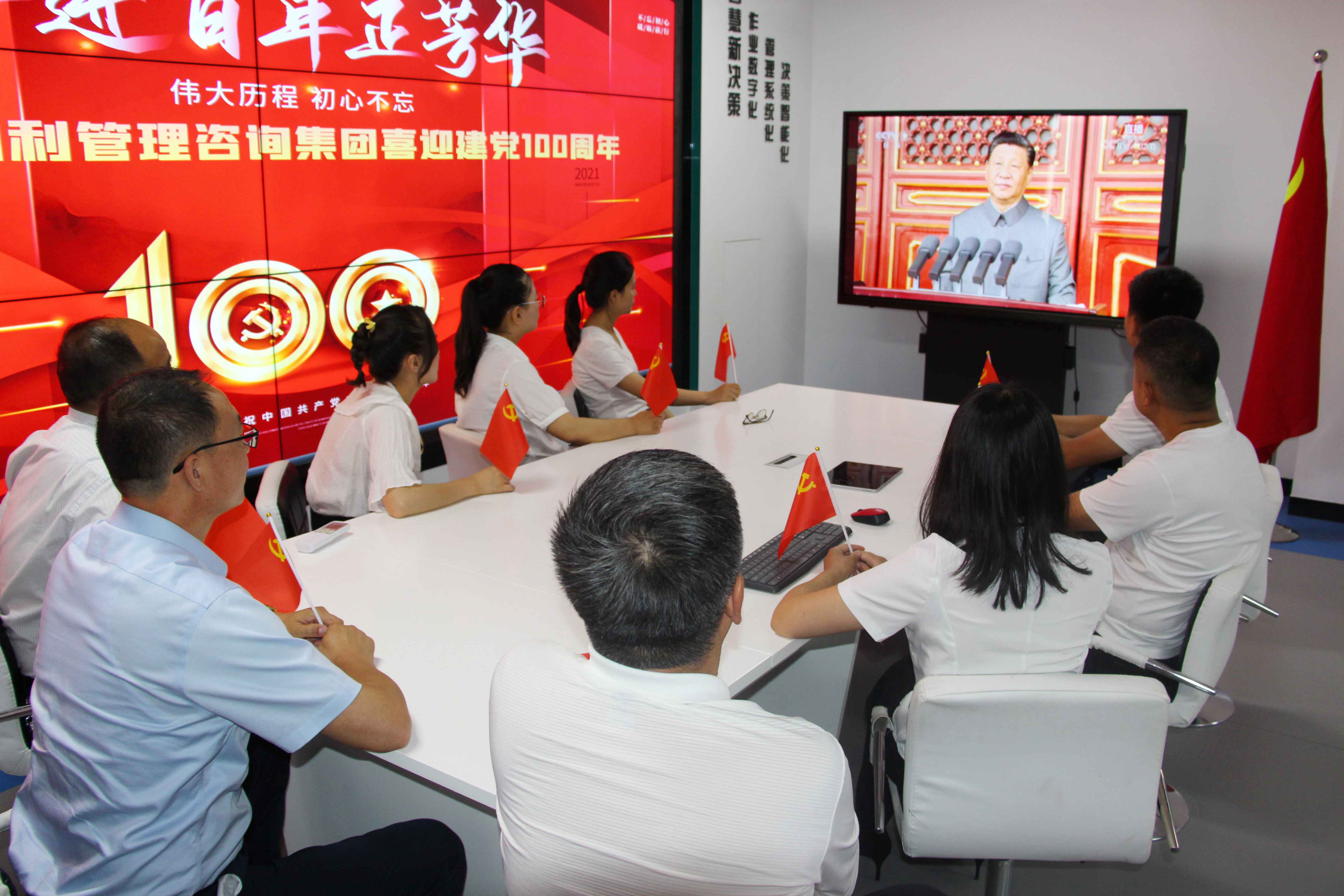 直播現(xiàn)場掌聲響徹北京首都天安門,和利觀看直播會議室掌聲成了我們最好的情感傳遞和抒發(fā)。大家深感黨的偉大、祖國的偉大、千言萬語一句話:不忘初心、永遠(yuǎn)跟黨走!