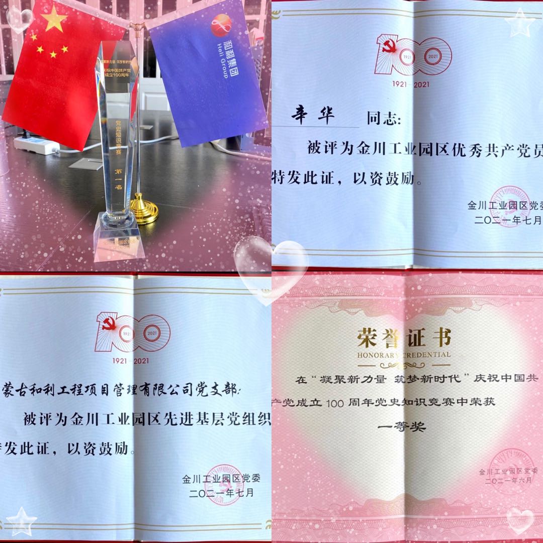 在金川黨委的正確領(lǐng)導(dǎo)下,和利黨支部全體黨員、入黨積極分子共同努力下,獲得金川工業(yè)園區(qū)舉辦的慶祝黨建100周年知識(shí)競(jìng)賽第一名、優(yōu)秀共產(chǎn)黨員稱號(hào),榮獲“先進(jìn)基層黨組織”等榮譽(yù)。